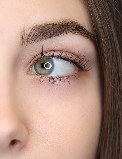 Брови выглядят естественно, будто аккуратно подкрашены тенями, с эффектом мягкой растушевки пигмента.